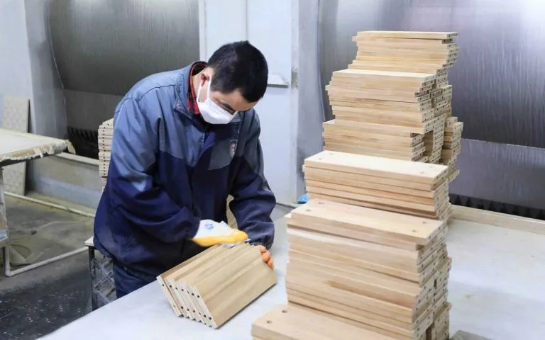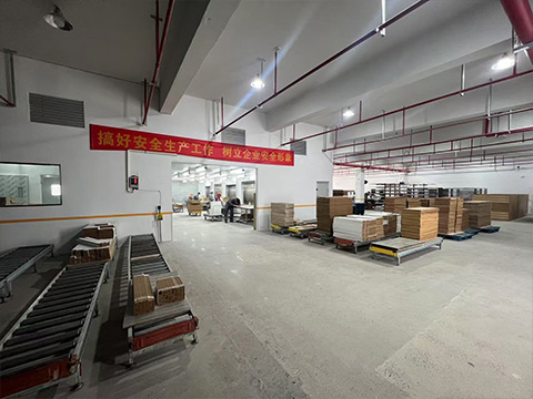 We have more than 15 sets of professional equipment, mainly including cutting machines, edge banding machines, hydraulic presses, grinding machines, and processing center machine. Also equipped with a professional paint room, warehouse.